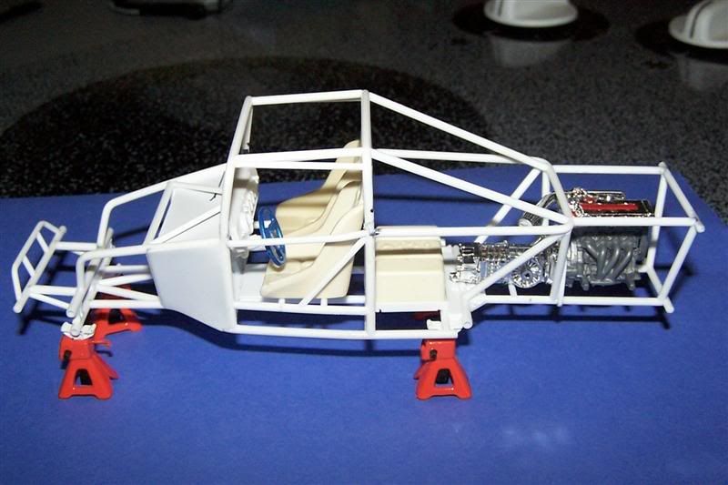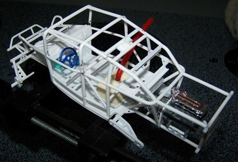 The cage is all built from evergreen styrene rod,if anyone is interested I have many in progress pics of the chassis and body.