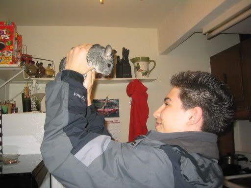 me and my buddy sprinkles. hes my sister's chinchilla.
