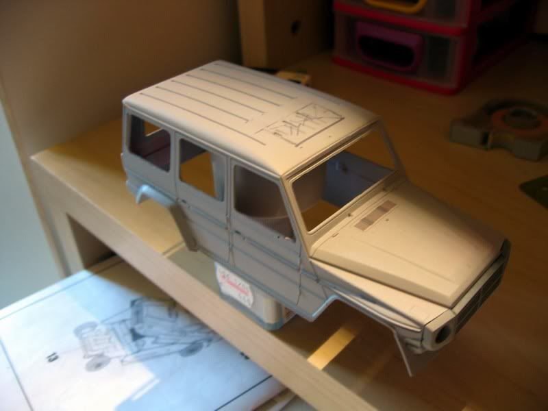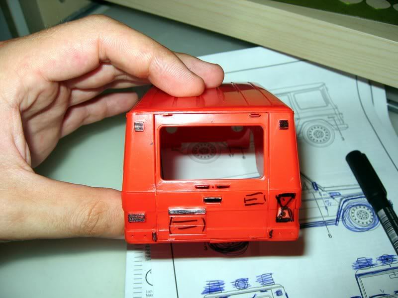I left openings for the aeration parts and for the lights, which will be added. Also, I made a spare-tyrecover, but I am actually hoping to give you pictures of the truck in primer tomorrow. for now, bye!