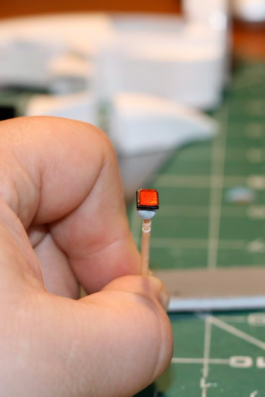 Here you can see I have experimented with SMS PE. I recessed the cover prior to painting. The antenna is just 0.4mm silver wire, with a blob of glue on the top. I need to paint it black yet but you get the drift... probably make the top more bulbous with another blob of paint if the mood so hits me.