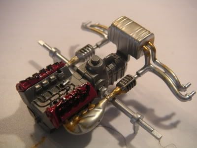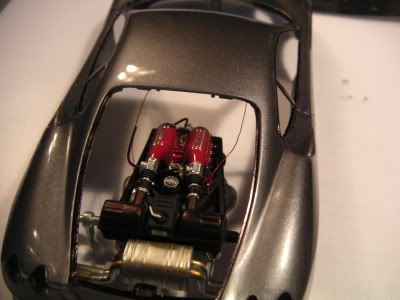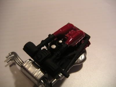 I actually painted the air intake pleniums with bright red gloss pain, rather then the prototypical cracle dimple flat red finish of any Ferrari - I took an artist liberty with it.
