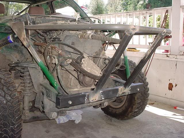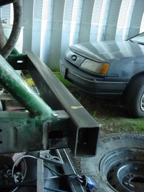 My bumper foundation is a piece of 3x2 .120 rectangle tube. I notched it to fit down over the frame rails so that the weight would be carried on top of the frame rather than by the end caps. It also places two contact surfaces 90 deg apart so that it will resist the tendency to twist up.