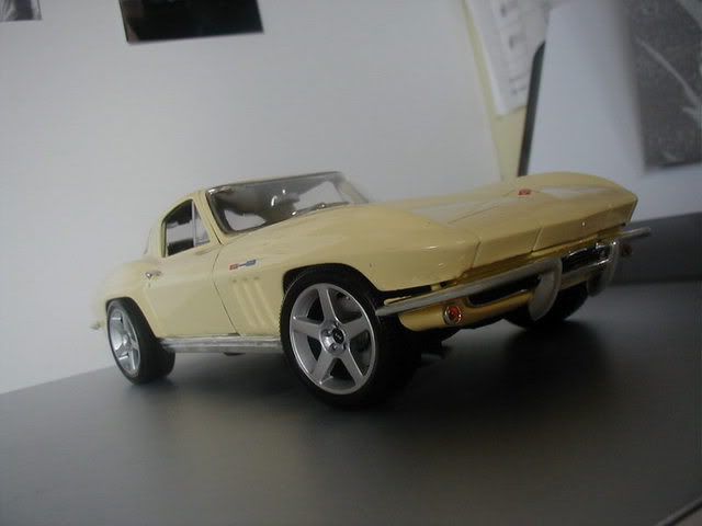 i've changed the wheels on this maisto Vette only because I had some spare rims hangin around , and the car needed a little brightenig up.