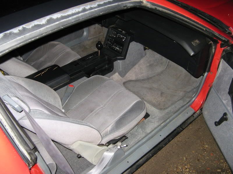 got the hood closing, 2 hood hinges and a latch fixed that, found some of the ground effects, got both the door pieces in the right color, now all i need is the lower passenger side rocker mounted dround effects, bought a new driverside door handle, finally got the car started, module in the HEI was shot, so i built, blueprinted and tested a new distributer, car fired right up, sounds good, picked up my heads and intake, still trying to find my crank, got some of my other parts, found a parts car, 83 or 84 f41 camaro, im pullin the carpet, dashpad, and center council out of it, and whatever else i can think, then you guys can have what you want out of it, got the interior cleaned up nearly,(about 3 entire cans of dr.pepper spilled in it ALL OVER, seats cleaned up nice, carpet is shot, same with dashpad, both door panel top, outer window sweeps, car needs new door and hatch weatherstriping