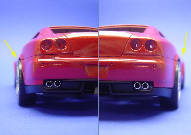 Like you'll see the revell arch's edge is very wide, almost 3 or 4 times more; also the shape of the arch is more smooth, rounded. The same in the rear one: