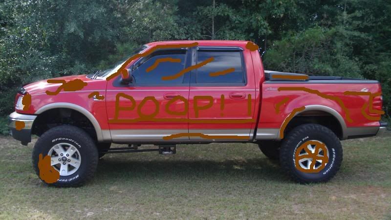 Just out of curiosity, what kind of deal did you get on it? My in-laws have a Ford that is almost identical, except that it is a 2002. It's not raised quite as much, but same color, trim, etc. (similar miles and everything). They are trying to sell theirs, but it's been over a year! I keep telling them they are asking too much compared to buying from a dealer. They are basically taking Blue Book value, and adding the FULL RETAIL price of all the aftermarket crap they added to it. :confused: