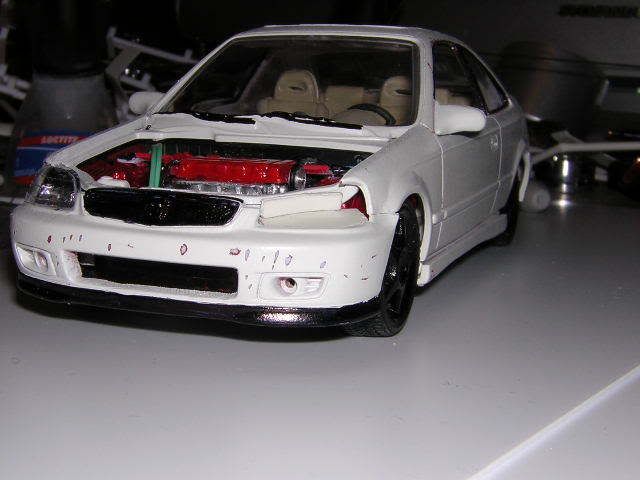 Sorry guys and girls, but this is gonna be N/A with Nitrous. Until I finish my Mustand and Peterbilt then I will bild a Turbo Civic and a Supercharged Civic. More progress later today got paint saterted on Misc. stuff.
