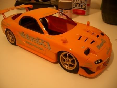 I have some Nissan GTR Nismo rims. So I will probably go with a Tamiya Brilliant Orange / Black Wheel combo.