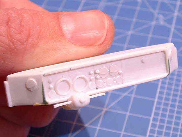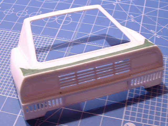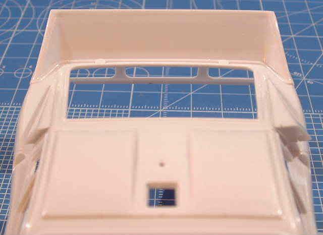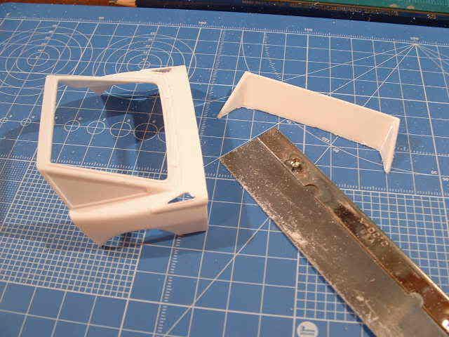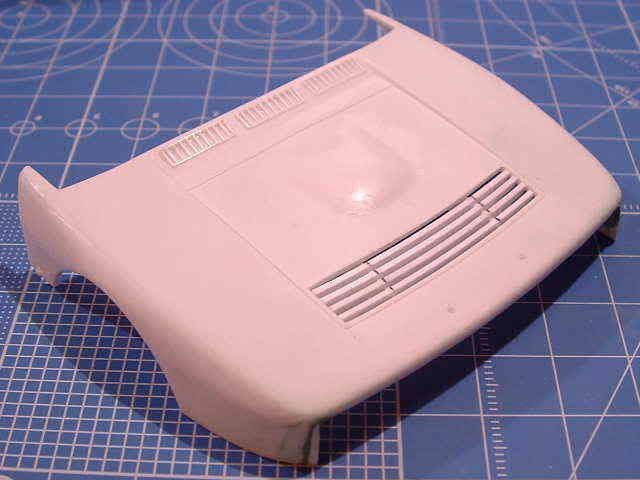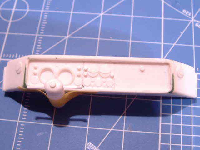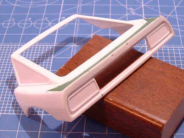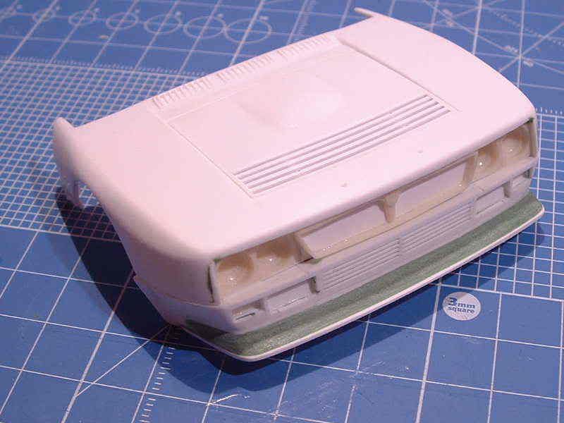 Slight mods to the rear bumper - Number plate recess reworked and Hasegawa's error with the width of the spatz corrected.