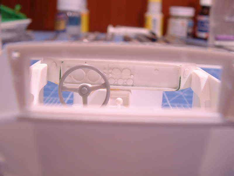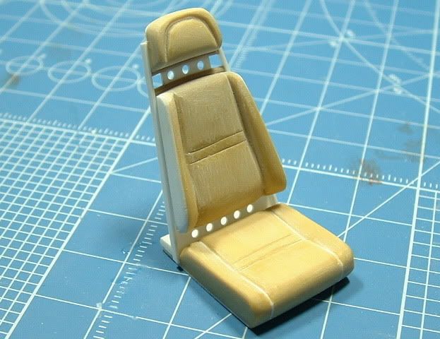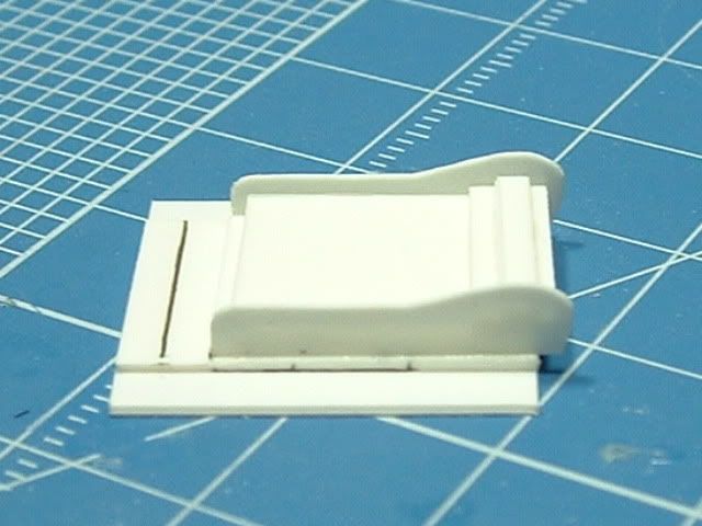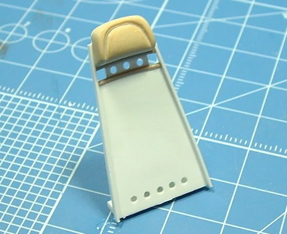 The headrest was attached to the scratchbuilt seat frame constucted from styrene sheet, strips and rod.