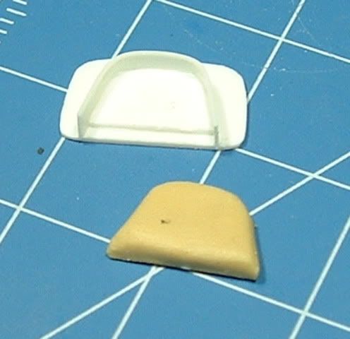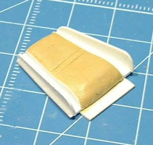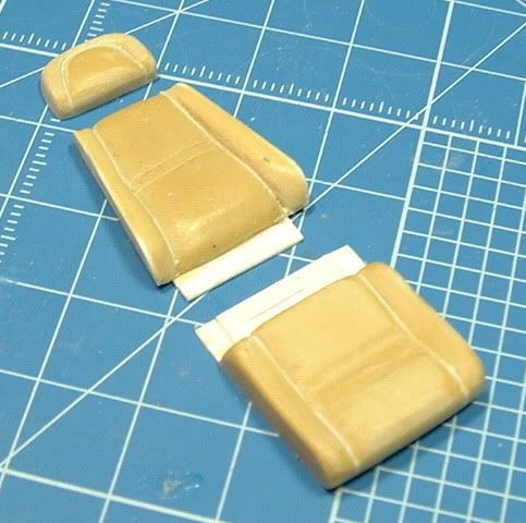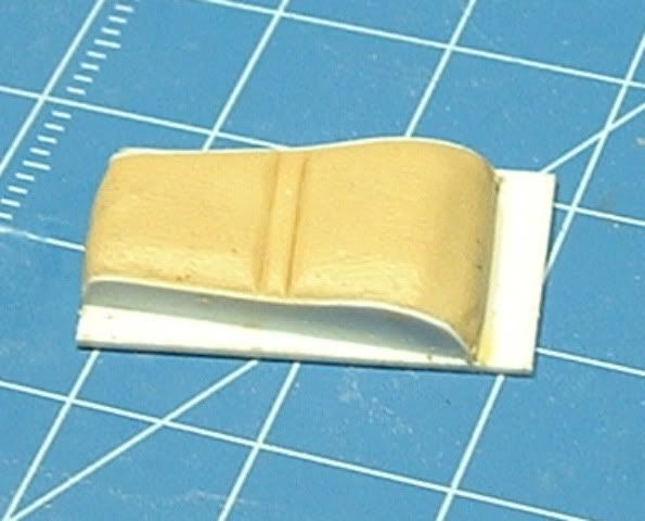 For the seat, back support and headrest, I made a sort of 'buck' from styrene sheets of various thicknesses to provide a guide when shaping the putty. The putty was rolled out flat and and cut as required to fit the buck.