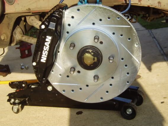Z32 calipers powder coated black, white "NISSAN" with D/S rotors all around