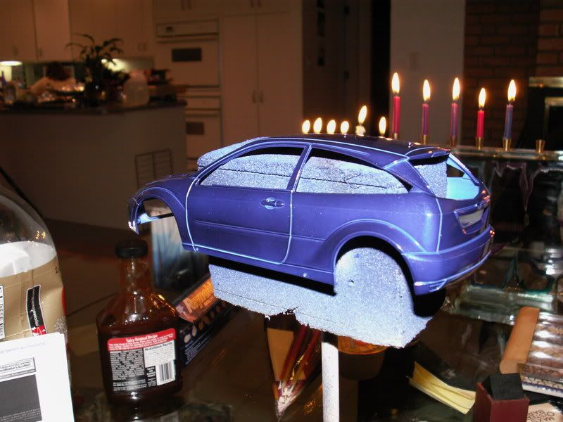 Well, since people were taking potshots at my modeling skills, saying I needed to work on the basics some more, I decided to start another model to be spiteful and to show them that maybe they shouldn't judge a modeler by one kit. So I present you with the Ford Focus in Performance Blue, to be made with the #6 markings raced by M. Martin in the Rallye Deutschland. I'll take natural light pictures tomorrow, because artificial light doesn't do the depth of this paint justice.