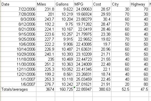 WOW. Well thanks for posting that. Maybe I will document mine more carefully too. I am urging people to post their mileage on http://www.fueleconomy.gov/