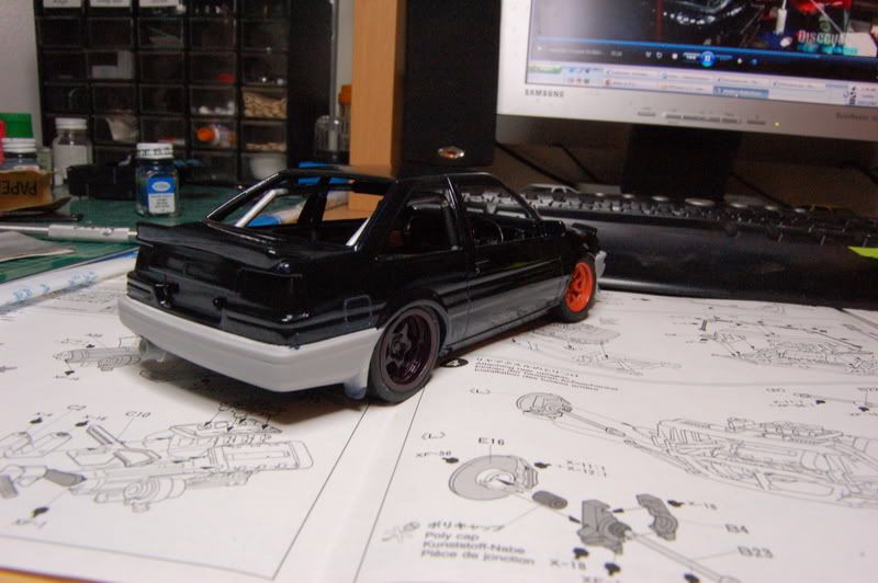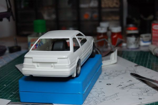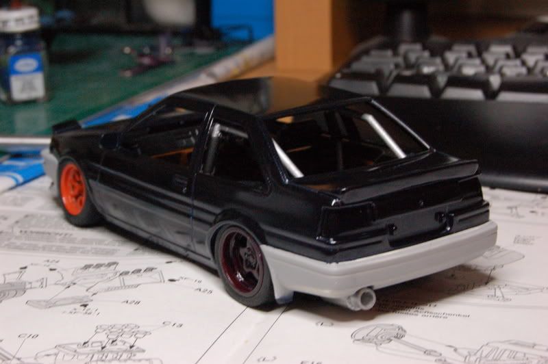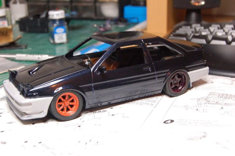 Lovely. What kit is this? I have an 86 also, but it dont look like the one I got. I got the Aoshima kit. But none the less the car looks great. Love the color. Keep us updated.