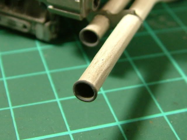 I also machined new outlets which look much better than the thick kit plastic. These were glued onto the exhaust and blended in before getting a coat of paint. http://i20.photobucket.com/albums/b246/robrex/Ferrari%20312%20T/DSCF0688.jpg