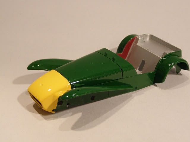 I've decanted, experimented and am going with the TS43 after all. It darkens up nicely after a few coats and will give a nice contrast to the yellow nose cone (said the color blind modeler). Also, if as Phil advises, it's good for the Lotus 25 it's also good enough for me on a Lotus 7 of the same approximate period.