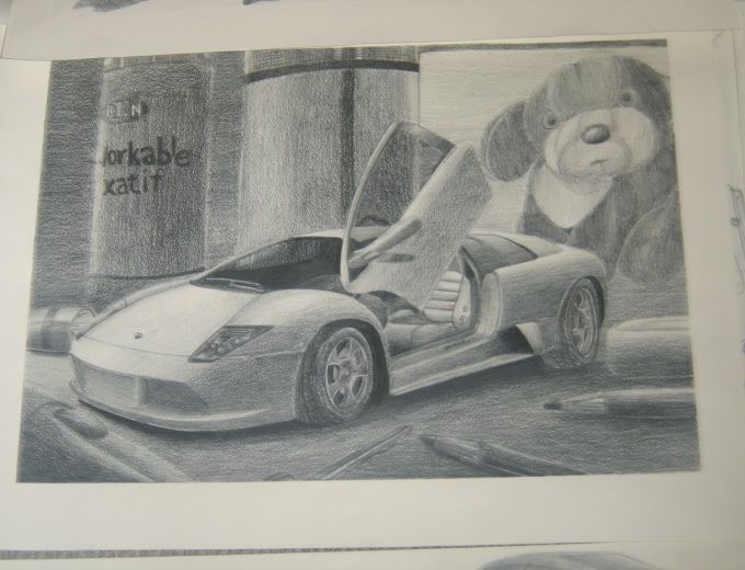 I happen to stumble upon this drawing I did two years ago. The wheels are off now that I look at it, but that can be fixed. :iceslolan This was for a project and basically drew anything on my desk.