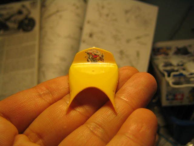 since i've cleared up the excess on the resin parts for the fairings & the nose cowl, i'm going to paint them soon. since i looked at the fuel tank resin part is almost the same as the kit, i'll be using the kit version instead of the resin part as i'm having fitting problem as the tank is way too thick. the hardest part is yet to come that is modifying the screen to fit on the nose cowl since it requires the cutting of the screen & that's the first time i'm doing it.