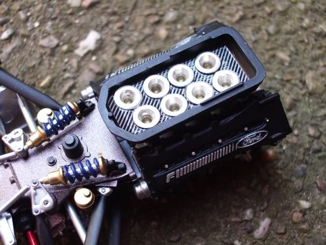 Looking good Steve I know what you mean about paintint the logo on the engine covers I am trying to paint the ones on my FW13B and their smaller the the Ford logo therenot coming out that nice at all. The intake trumpets look awesome can't wait to see installed. :)