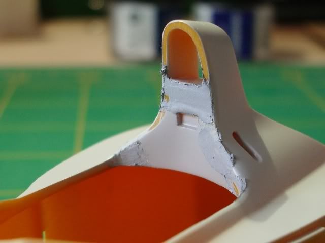 I've added the bottom of the monocoque to the tub.I should have left the seat out till last though as it's going to complicate the masking a little,but I should manage.The headrest area came out nice in the end after a few sessions filling and smoothing.