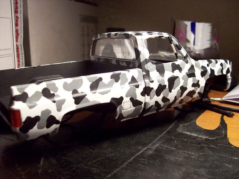 Ok, I finished the camo on the cab and am getting ready to do the hood and tailgate, the bed still needs a litle more putty and paint so thats not ready yet.