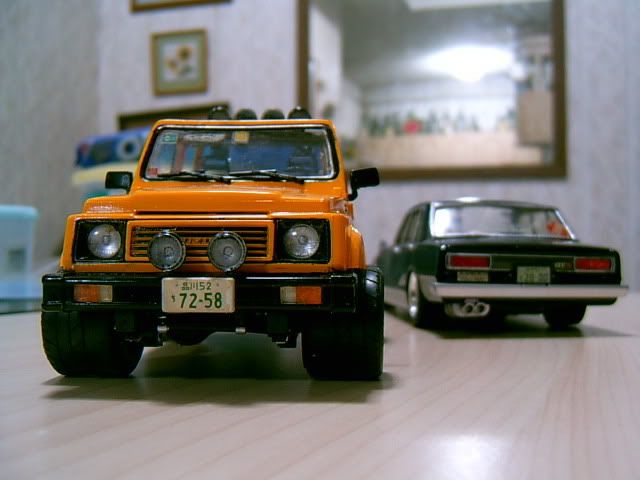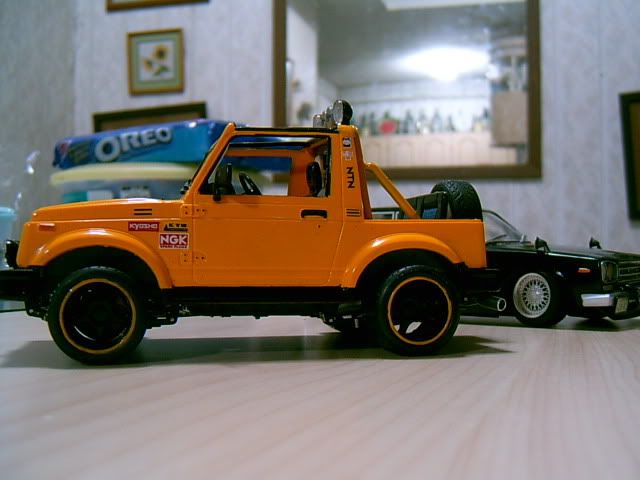 @zak78: the chiller in front of the skyline is an oil cooler, old school style. the rims on the samurai are fujimi 345 porsche style wheels, repainted black. a set is coming to you. :D