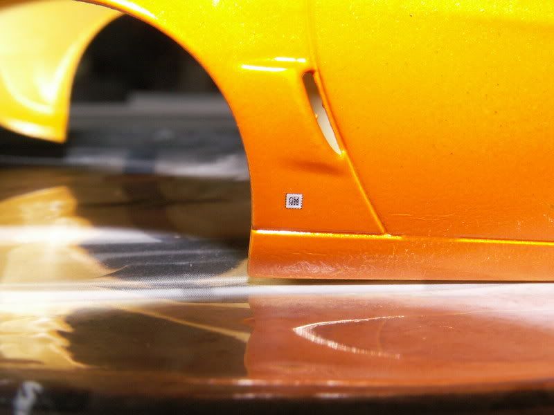 Thanks for the advice about the taillights, however. I don't have any BMF, but I did use Model Masters Silver Chrome. I swear to God, this paint is amazing. You open the bottle and it looks like someone melted the front bumper of an old Cadillac and gave it to you. I absolutely love it. So I used that instead... hopefully it'll look good. I did that after I took the following pictures of the body outside, after a second clearcoat to lock in the decals. The car basically GLOWS.
