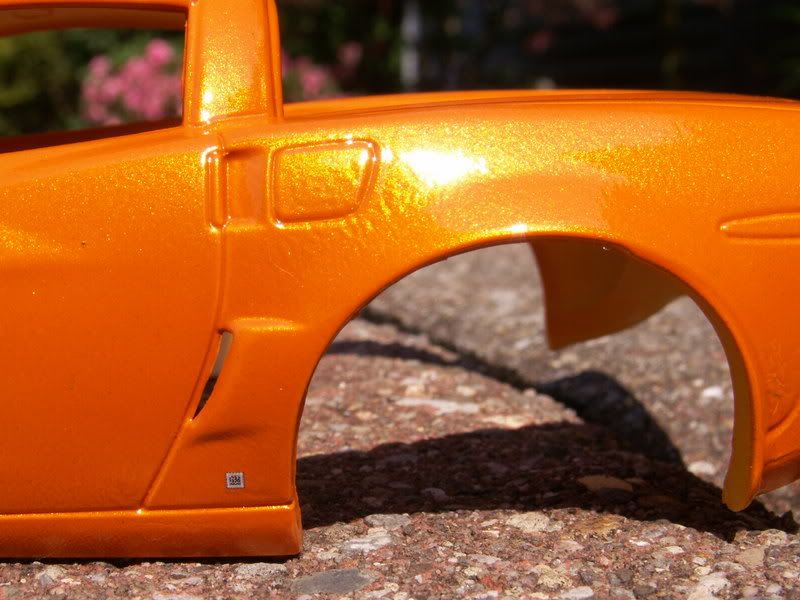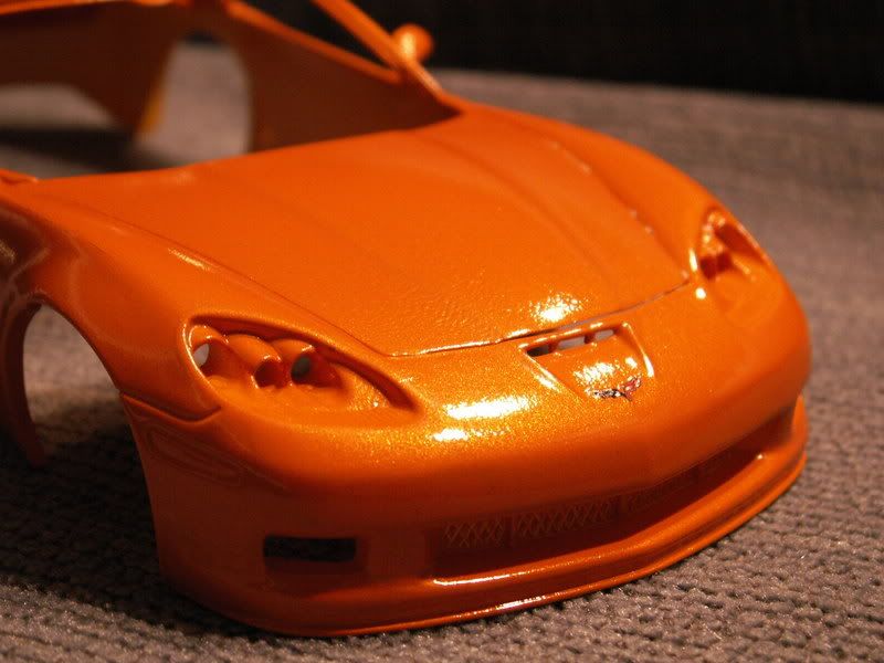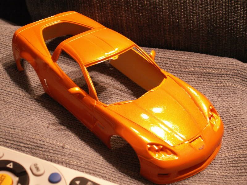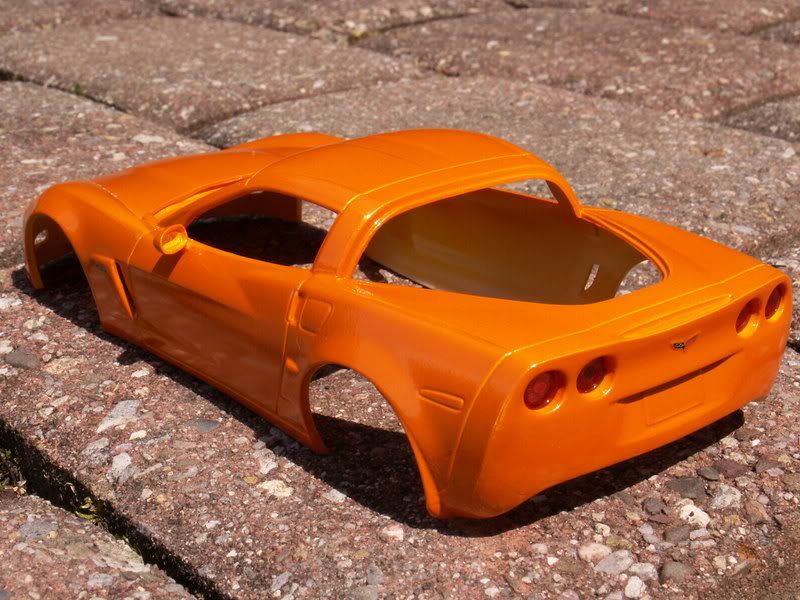 Well, since my Viper is taking a little break, I started on a Z06. The color is Cobra Colors, and I know there's orange peel, but I ran out of paint (I'd used it a few times before, including a ruined C6 Corvette) and I finally got it to be as brilliant as I wanted, so I can deal with a little orange peel. I wish there was someone in the US that made good paint like Cobra Colors used to. Well, here are the pictures.