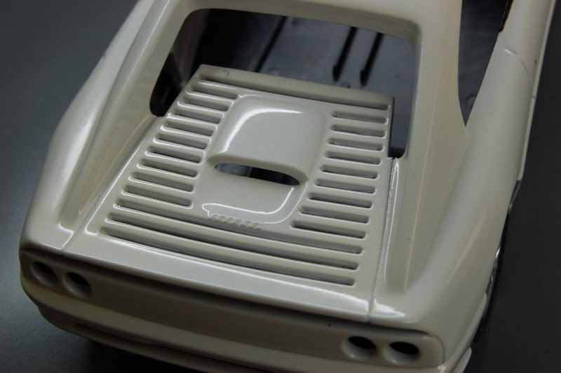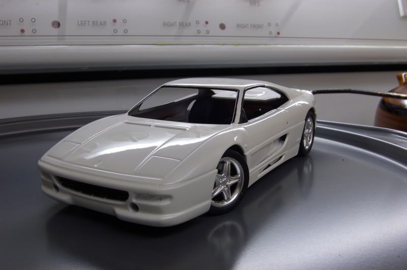 Hey chaps, haven't posted anything for a while, but here I am with one of my favorite ferrari's. A great simple kit to build, the only down side is that, if you start cutting out the rear vents, be sure that you have patience and a lot of time. It took me about 6 minutes per slot. Sure it doesn't sound like much, but when you are scraping 2 of them in a row with a blade, you sure want to take a brake because your fingers are just killing you and the amount of stress is very high, because you don't want to break them off.