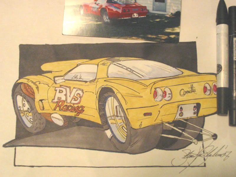 Just getting back into it after a month or so. Here's a quick rendering of my Dad's Corvette. This was just a loose drawing about 10 minutes or so, and then added colour. The car will be painted yellow this year, so thought I would see what it would look like. I will probably do it again in PS or ILLY, but couldnt wait to add some flash. C&C welcome..thanks