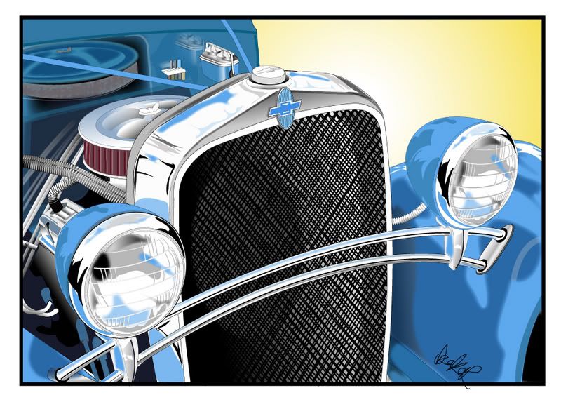 There is something a little off with the perspective that my eye keeps coming back to. I'm not sure if I can pin it down to one thing though. It may be the angle of the grill in relation to the headlights, it's just a fraction off. I feel like I want to rotate the healights just a touch back into 3 dimentional space - I'm not explaining this very well. :)