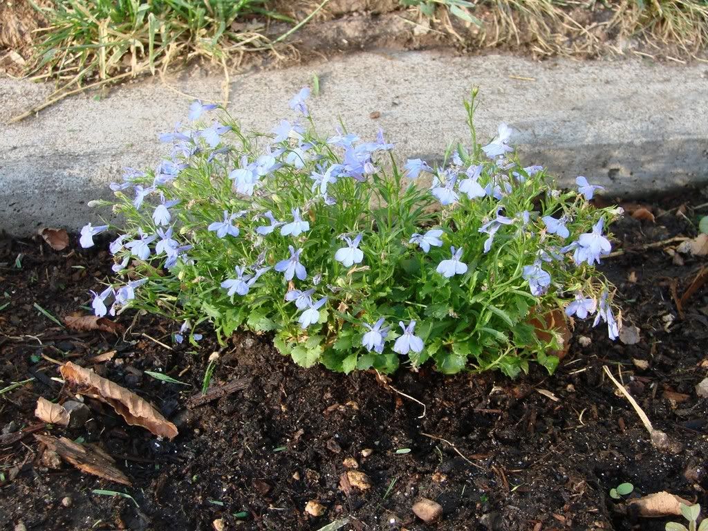 blue flowers i planted in planter in-between our house & the neighbor's driveway...