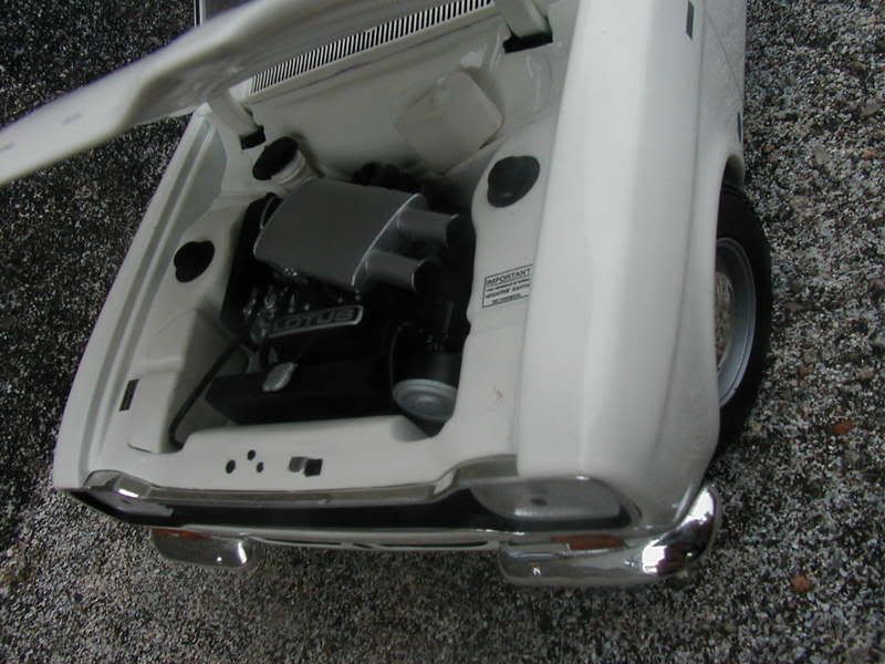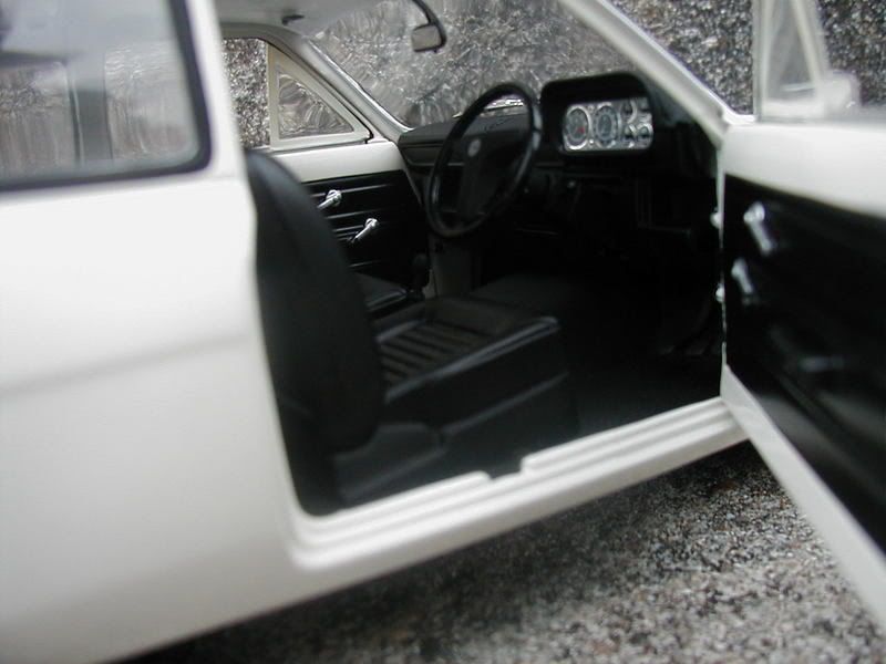 Got this on my holidays for half price £19.99 ( should be 39.99)It is a highly detailed model in Diamond white and has "dog dish" hubcaps which have a mirror finish , the lotus twin-cam engine is also highly detailed with correct air ilter, Lotus writing and it all being plumbed, there's also a VIN plate and a safety warning, Interior is well detailed with a steering wheel unique to the twin cam and chrome trim around the gauges! It goes well with my other mk1 , The red RS1600.