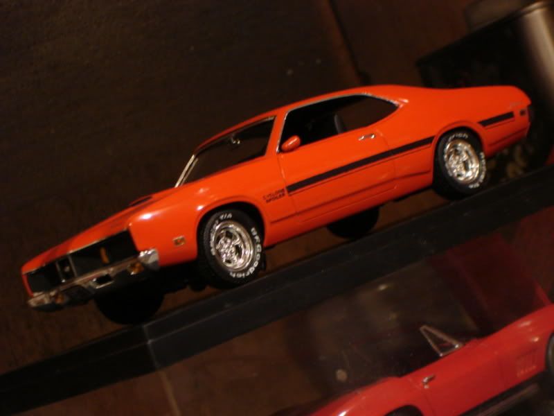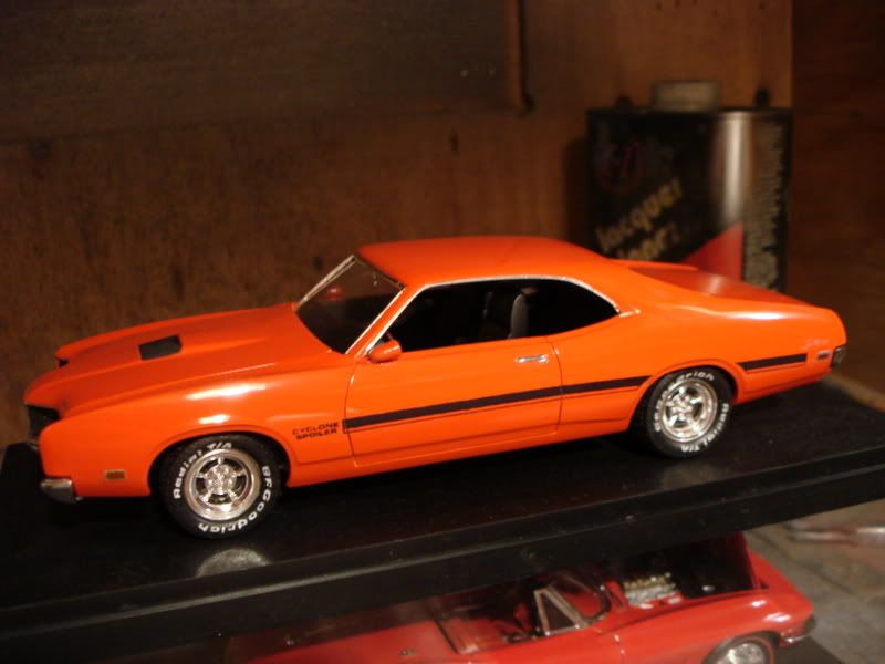 http://i99.photobucket.com/albums/l284/mmmdrc/my%20models/DSC01654.jpg Tires and rims came from the AMT Cougar that was re-issued recently, the paint is Testors Lacquers Hugger Orange w/o clear, wet-sanded and polished..........