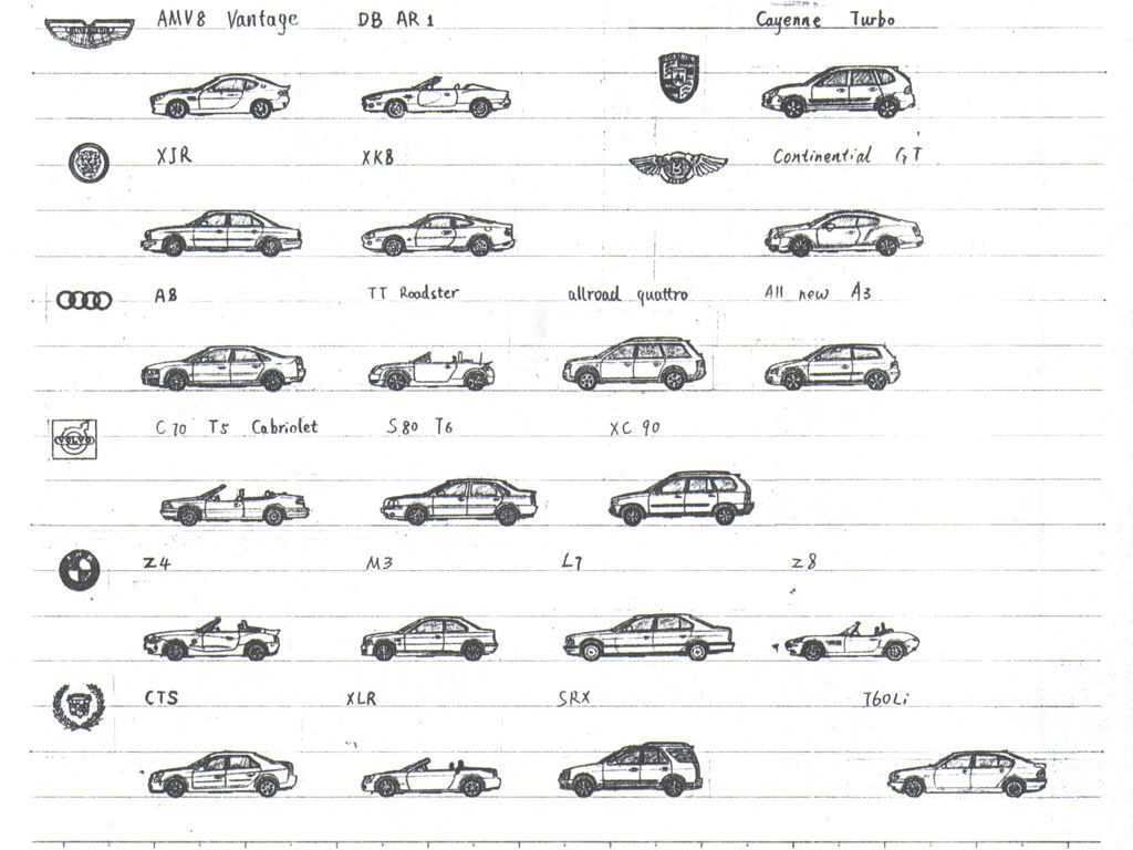 How do you do that? Are they drawn from sideview references? They are so small and though precise... and the wheels are pefectly round... are they kinda stamped? Please tell us sth about your technique and if you have any more, show them to us!
