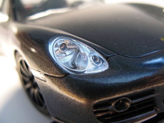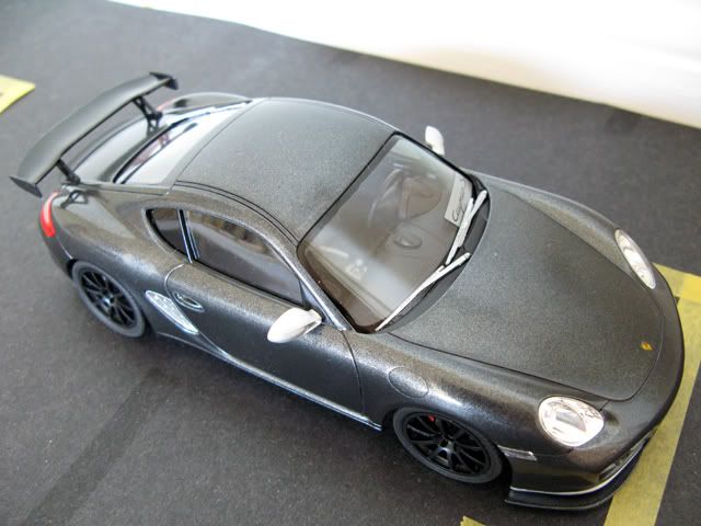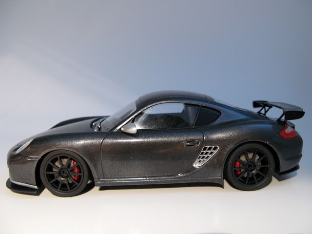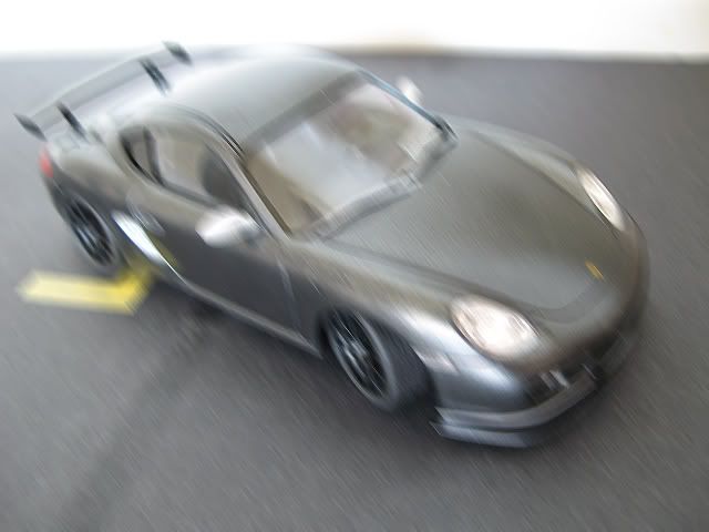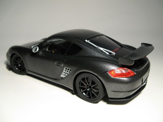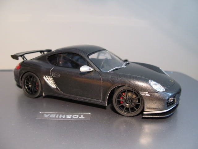 Anyways, the car. Porsche Cayman S from Fujimi. Put on Sportec MONO 10s, front splitter, rear diffuser (sort of), a wing, and a new exhaust. The color is Nissan Charcoal Pearl and cleared. Thats all i did! Enjoy!