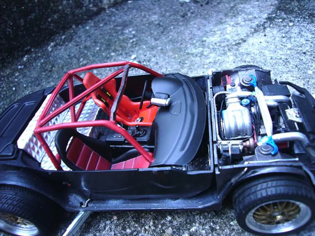 Interior : Rollcage, shiflight, aluminum floor, bucket seat and scratch built seatbelt with 4 points harness.