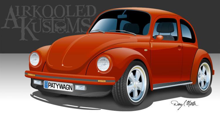 Here's my third attempt at an illustrator cheat/trace and render. I modified a volkswagen Super Beetle I found on the 'net by adding some Porsche "fuch" style wheels and then brought the image into Illustrator CS2 for tracing and coloring.