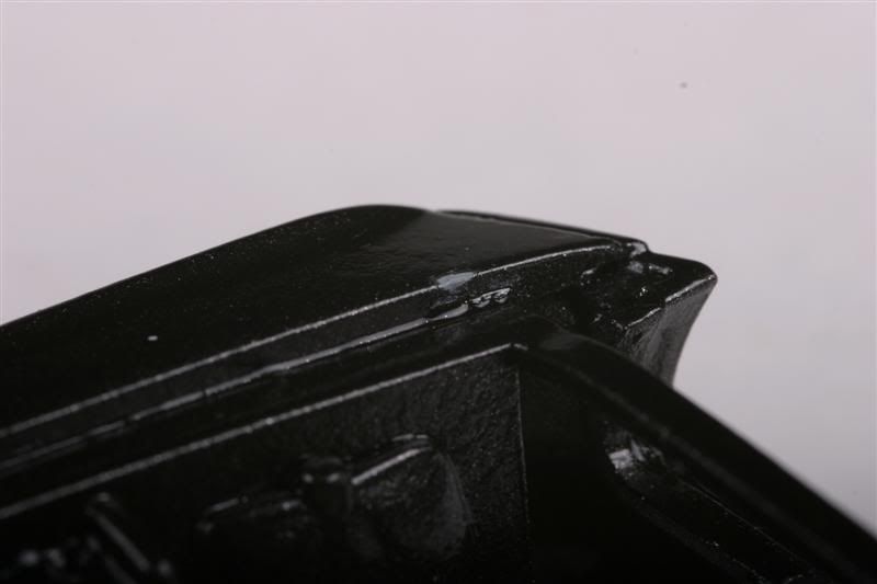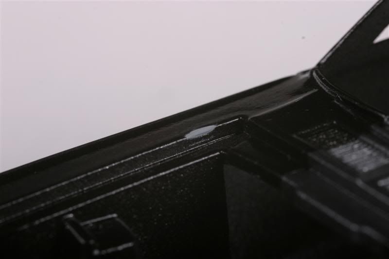 I had this body drying with the hood in place for about a week. When I removed the hood, two pieces chipped off. I also noticed that the tape for the stripe pulled up some paint as well. The coats of clear have already been applied.