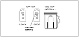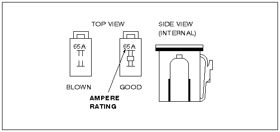 Fuse link cartridges have a colored plastic housing with a clear "window" at the top. To check a fuse link cartridge, look at the fuse element through the clear "window".