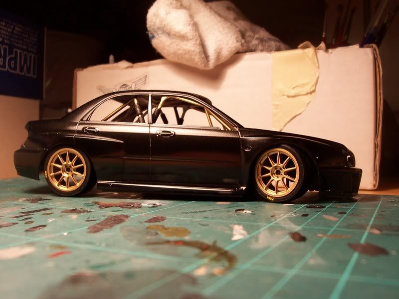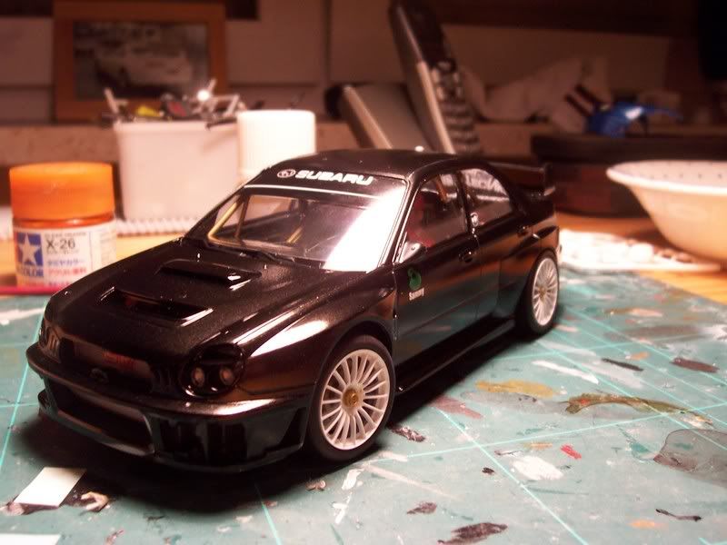 @ PLasticmodeler702: the pain is a mistake i think.......i paint it in black.....an after a half hour i spray the clear coat........so an then after 1 hour on air...the paint was dry....but my plan was....to polisch befor the clearcoat:banghead::banghead::banghead:.........no w i polish after......but the subaru have "dimpled skin"(orange.skin)......