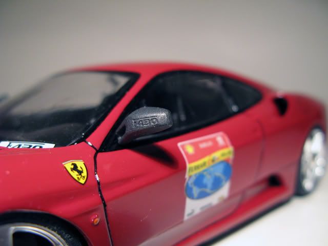 The Wheels are from the Cayman with Ferrari center caps. Brakes and exhaust tips are from the Fujimi F430. The new seats are from the Focus. And lastly, the 60th decals are made by me. BTW, I know i dont have the 60th Relay ID decal on the car.