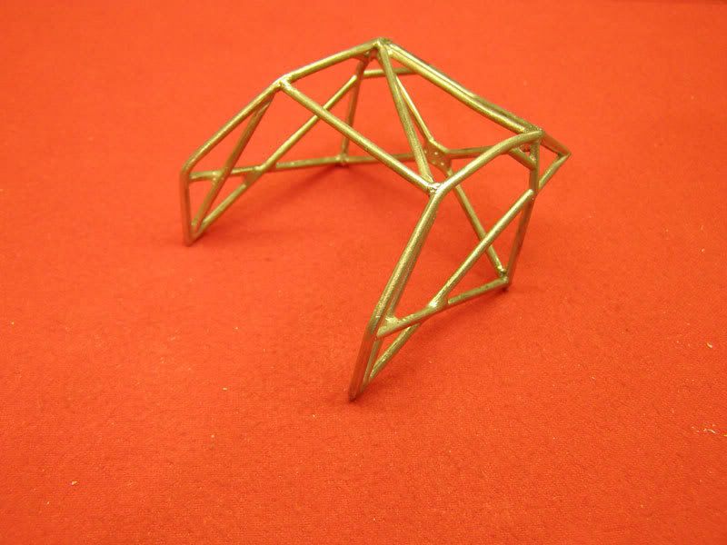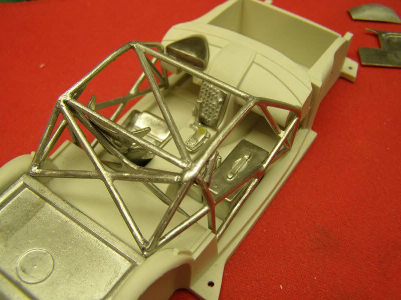 Next was to put together the white metal roll cage. Sam suggested that soldering was the best/only sensible approach to this part and this worried me because I have never successfully soldered anything in my life. I was going to do it with CA but at the last minute Gio kicked me in the ass so I tried soldering anyway and I am pleased with the way it came out (BTW in these shots, you can see 2 of the three resin parts in the kit)