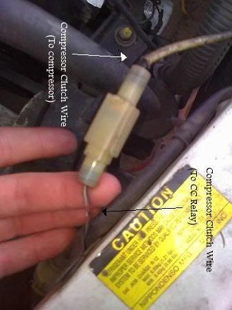 But better yet would be a switch that controls a relay that has one control circuit and can power two slave circuits. Enabling you to turn both the condenser fan and compressor clutch on with the simple flipping of a switch. With proper circuit protection that would be an easy and clean way to by-pass the crazy factory wiring.
