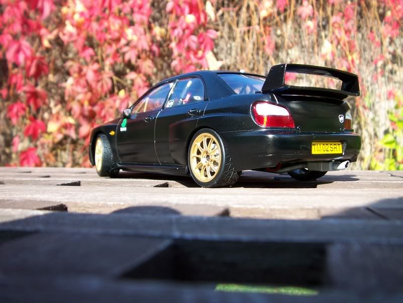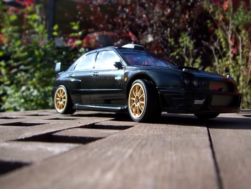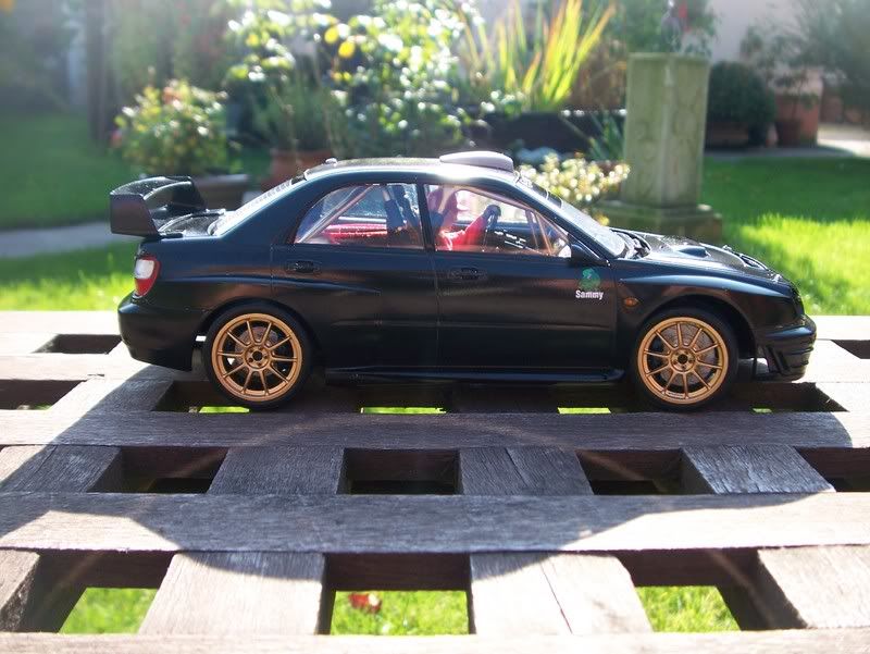 I like it. I have been trying to come up with a livery for a black Subie for a while now - I think the black/gold combination looks great. Congrats.