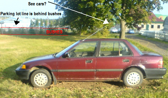I forgot to mention... the car is still in the grass.