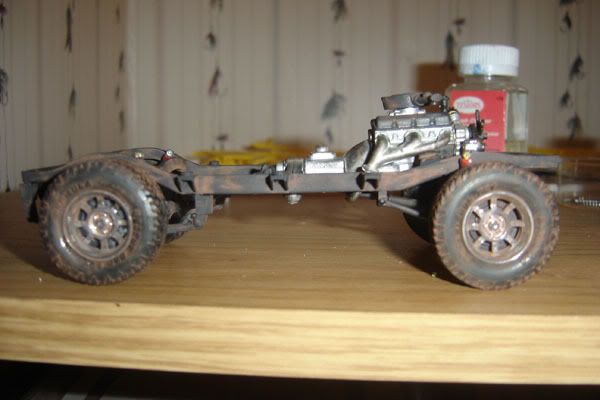 I used soft pastels to add the weathering to the chassis and engine.