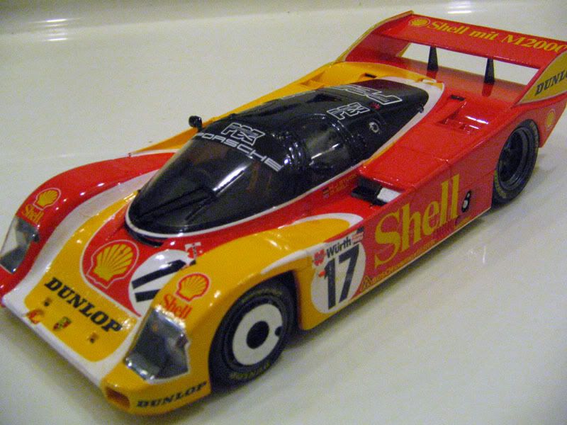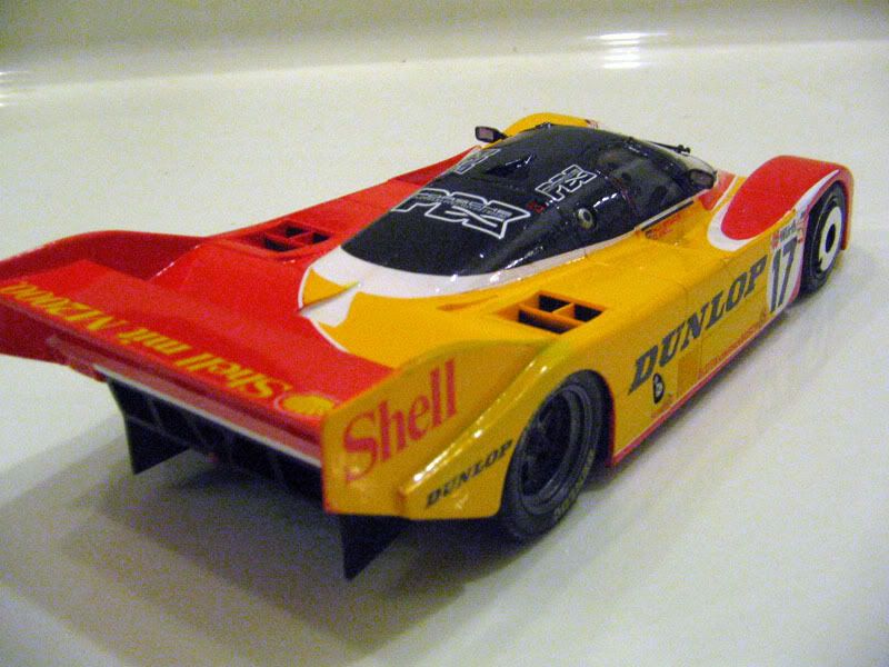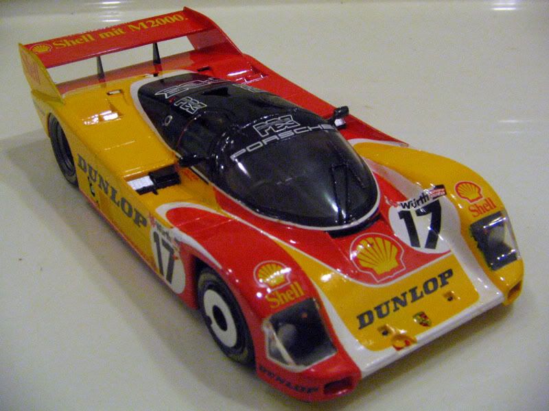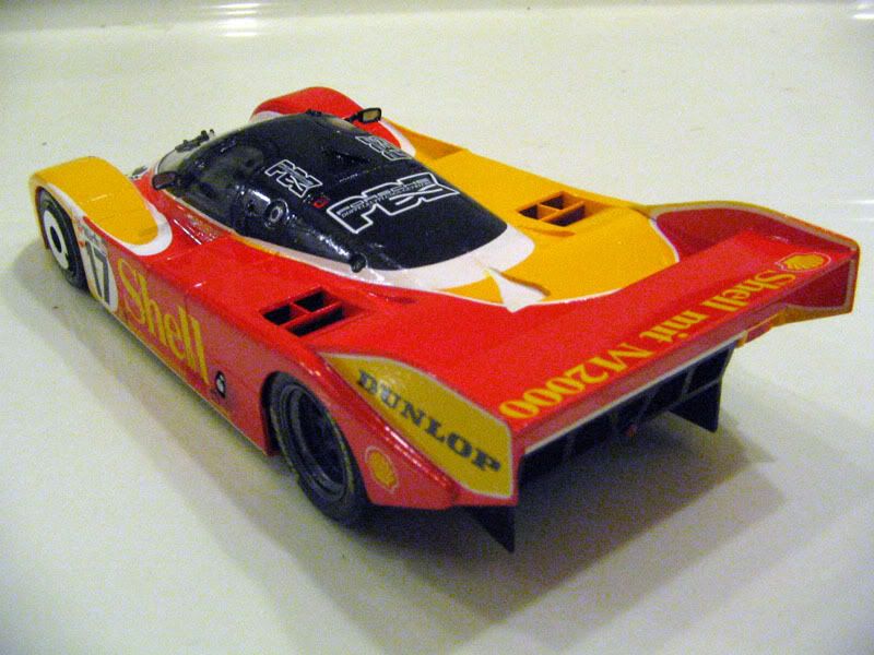 The molded in windows come from the fact that the body was originally made for Tamiya's line of 1/24 R/C cars in the late 80's- so it was made more for strength than detail. Tamiya released the 962 as a 'static' kit almost as an afterthought. At least they put some good decals in the rerelease.