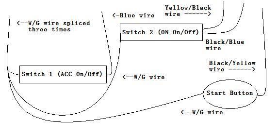 When you start the car, turn on the ACC switch, then the ON switch, then push the start button to start the car (release after engine is running). When you shut the car off, turn off the ON switch, then the ACC switch.